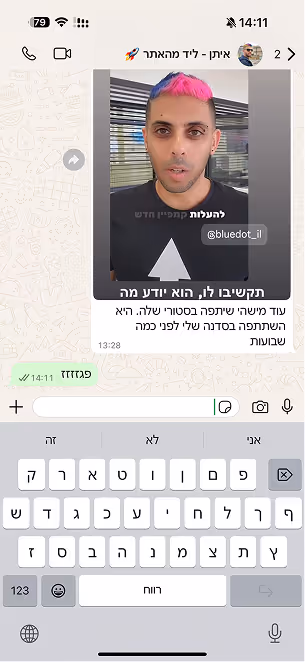 זה לא עוד ליווי גנרי שמלמד “איך למכור דרך מצלמה”, אלא תהליך שמחזיר אתכם לעצמכם ומלמד אתכם איך להעביר את זה החוצה בוידאו שמייצר חיבור, אמון, והכי חשוב - פניות.